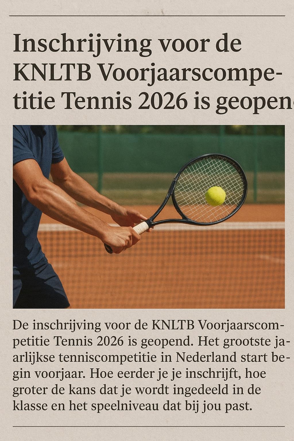 De inschrijving voor de Voorjaarscompetitie 2026 is weer geopend.